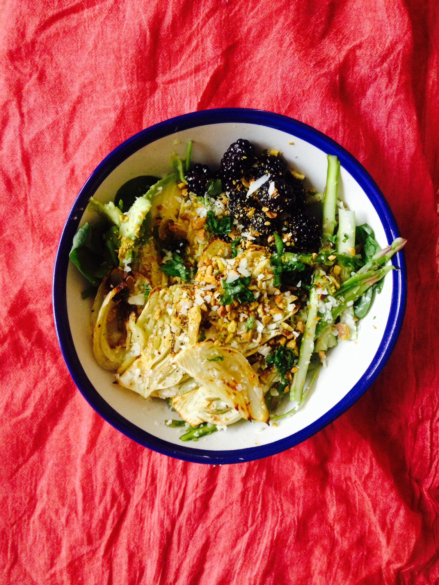 Roasted Fennel, Shaved Asparagus and Blackberry Salad